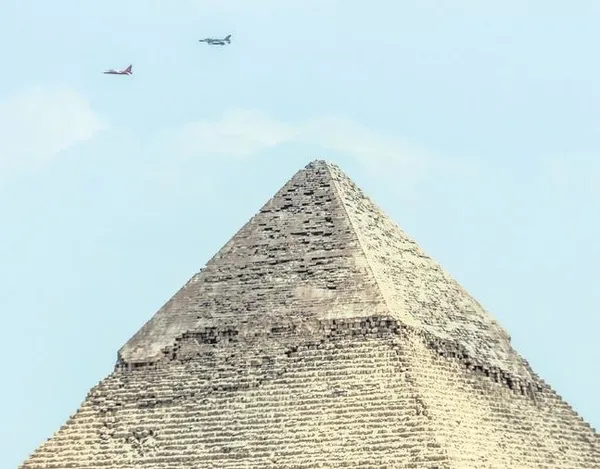 Dünyanın birçok ülkesinden çok sayıda şirketin savunma sanayisi ürünlerini sergilediği Mısır’daki Uluslararası Havacılık Fuarı’na katılan Türkiye’nin Jet eğitim uçağı HÜRJET, Mısır’ın simgelerinden biri olan piramitlerin üzerinden gösteri uçuşu gerçekleştirdi. Yaklaşık 10 dakika süren uçuş, piramitleri ziyaret eden turistler tarafından da ilgiyle takip edildi. Mısır Savunma Bakanlığı ve Mısır Hava Kuvvetleri ev sahipliğinde düzenlenen ve üç gün süren fuar dün sona erdi.